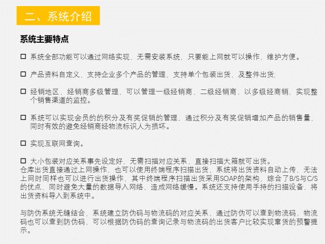 点评:提供给需要经销商管理的企业,完备的产品防伪与经销商防窜货解决方案。