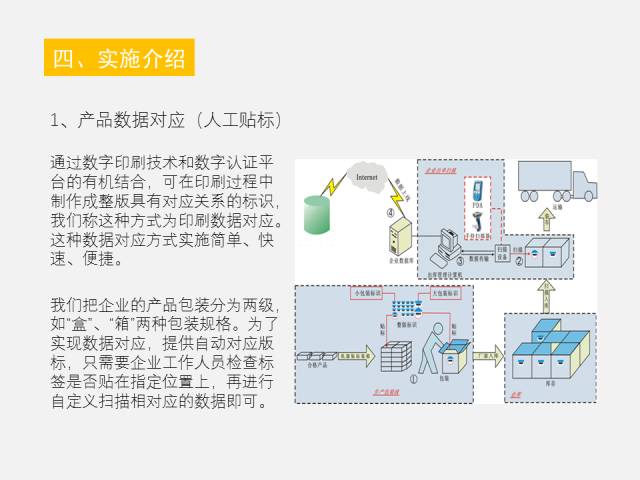 企业内部人员及经销商通过网络的方式,输入大箱或产品上的编号及可查询产品的信息及产品物流过程,实现产品的流通渠道的追溯。