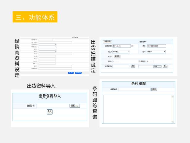 通过网络追溯系统企业设定好产品数据,经销商资料,出货时扫描大箱,记录出货的时间,出货的客户,以及产品信息等,经销商同时也可以通过网络进入系统,设定好下一级经销商资料,同时记录好出货的信息。